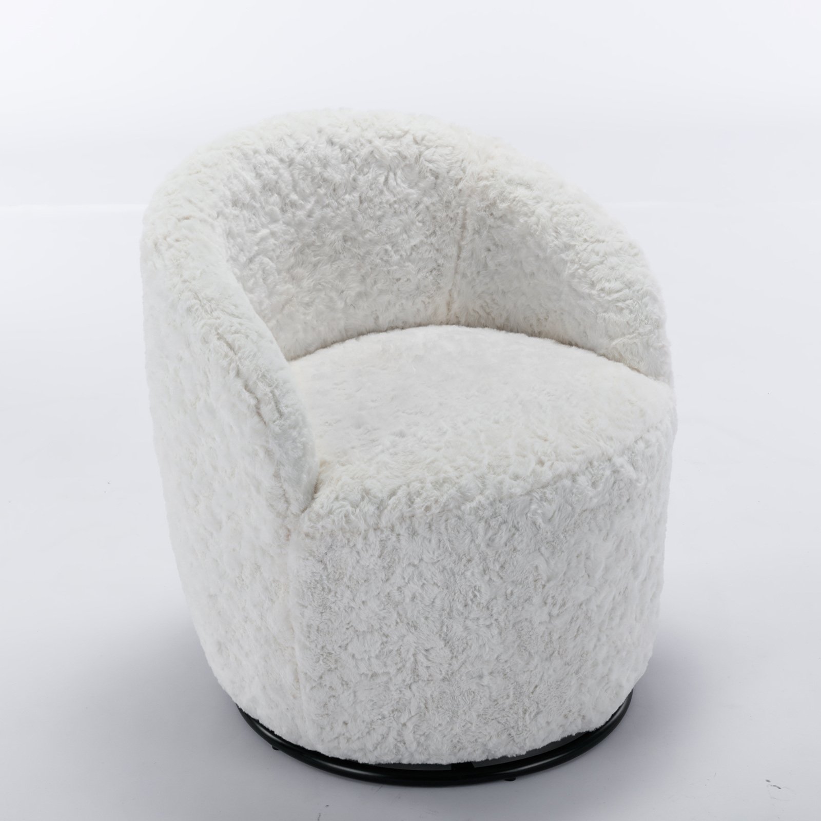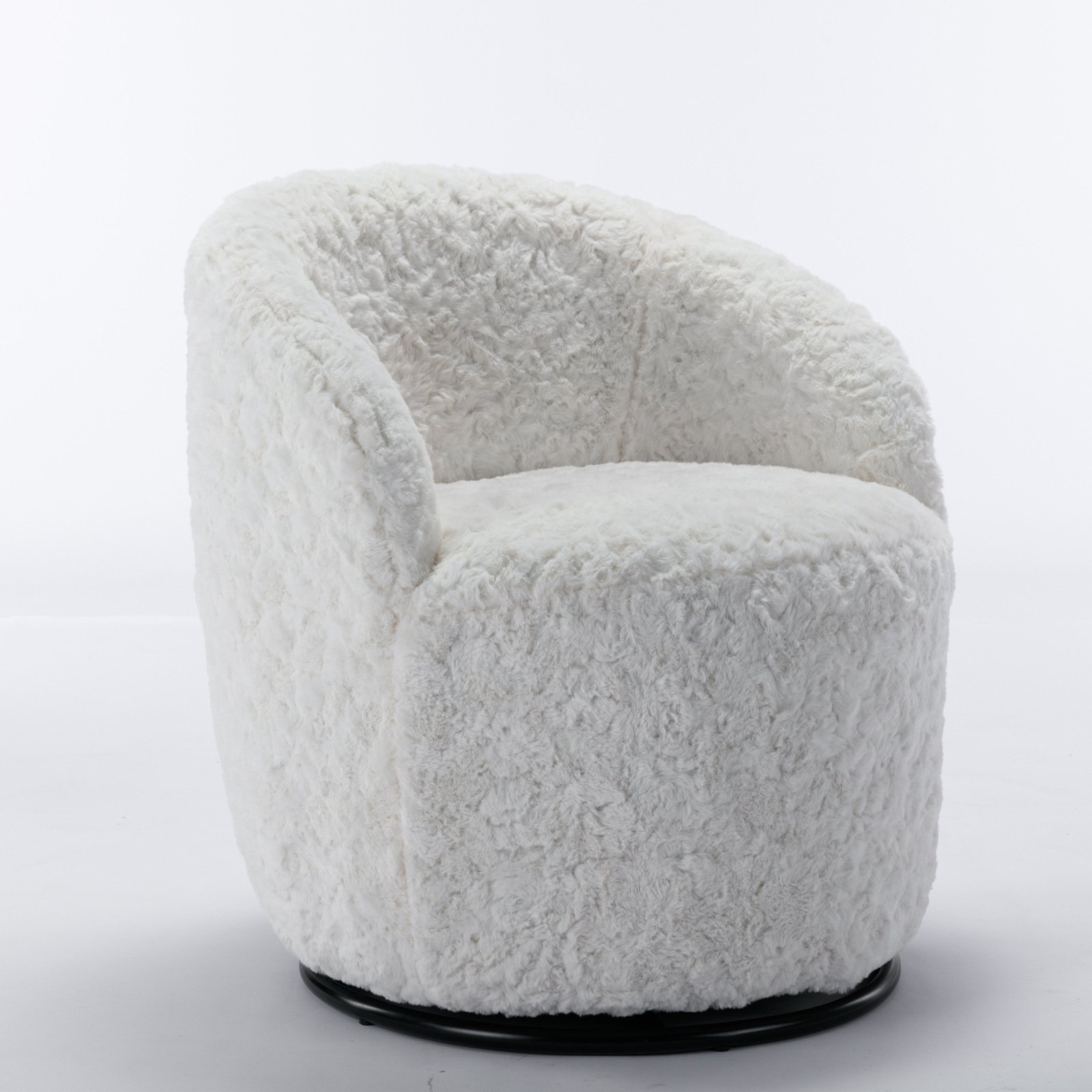 A&A Furniture,Artificial Rabbit Hair Fabric Swivel Accent Armchair Barrel Chair With Black Powder Coating Metal Ring,360° swivel feature make this mo