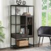 Home > Home Office Bookcase and Bookshelf 5 Tier Display Shelf with Doors and Drawers, Freestanding Multi-functional Decorative Storage Shelving, Vintage Bro