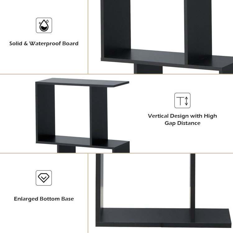 4.Modern and Stylish Bookshelf: Designed with concise and stylish concept, our black bookshelf adopts an S-shaped design to present an aesthetic feeling. The bookcase matches well with different styles of decoration in your house and it can be used as a storage shelf, flower stand or display rack in the bedroom, living room or even in cafes.