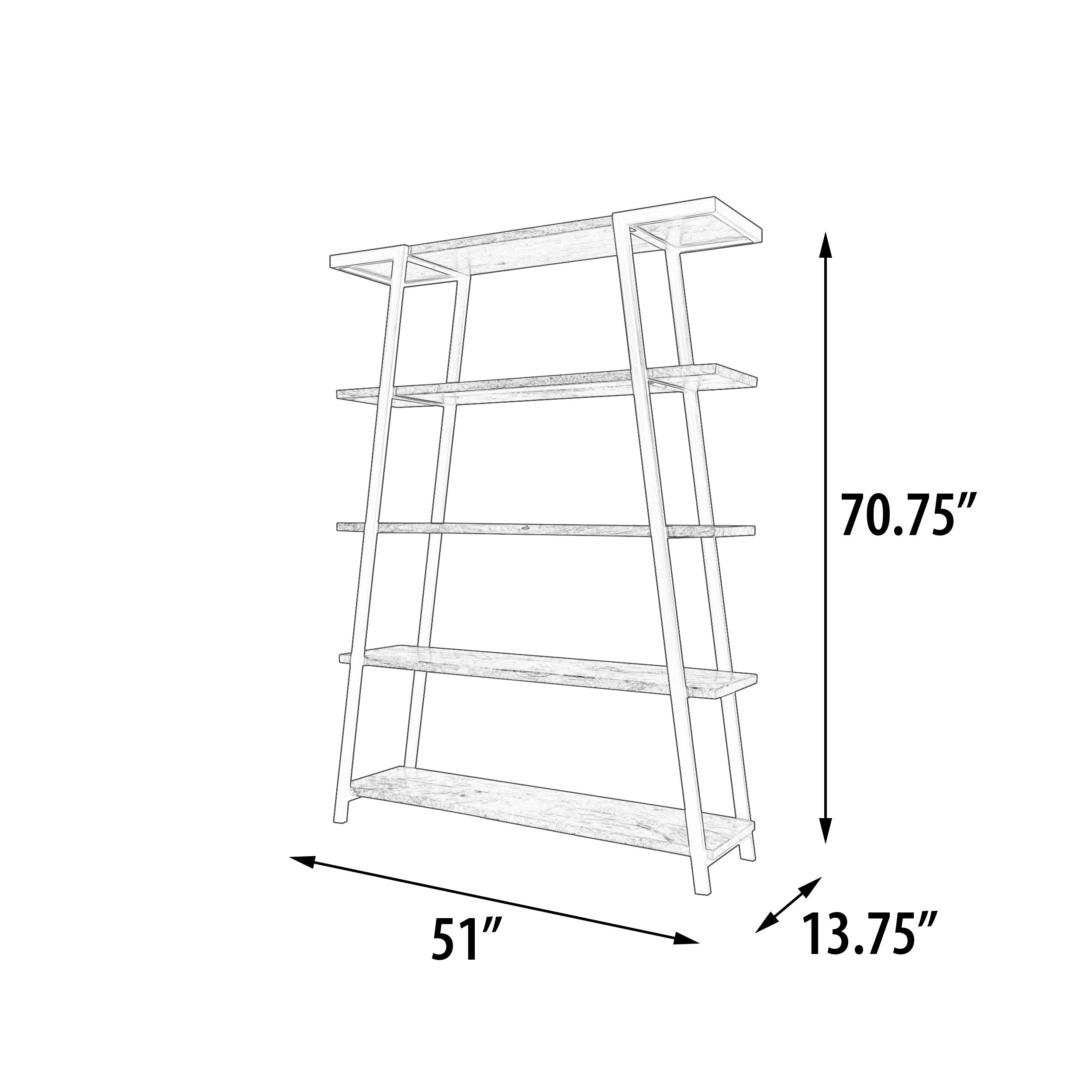 Our Large Modern Industrial Mango Wood White Wash Metal Frame Shelving Unit 51" Wide X 70.75" Tall. Solid Mango wood shelves are supported by Heavy Industrial Iron frame. The Unit gives a modern functional design. The wood is specially finished in a beautiful white wash that accentuates the Mango wood popular graining. The Metal Frame is complete and assembly requires simple placement and securing of the shelves. Can be combined with other Mango washed items made exclusively for AFD Home Collection. Hand Made in Indonesia