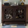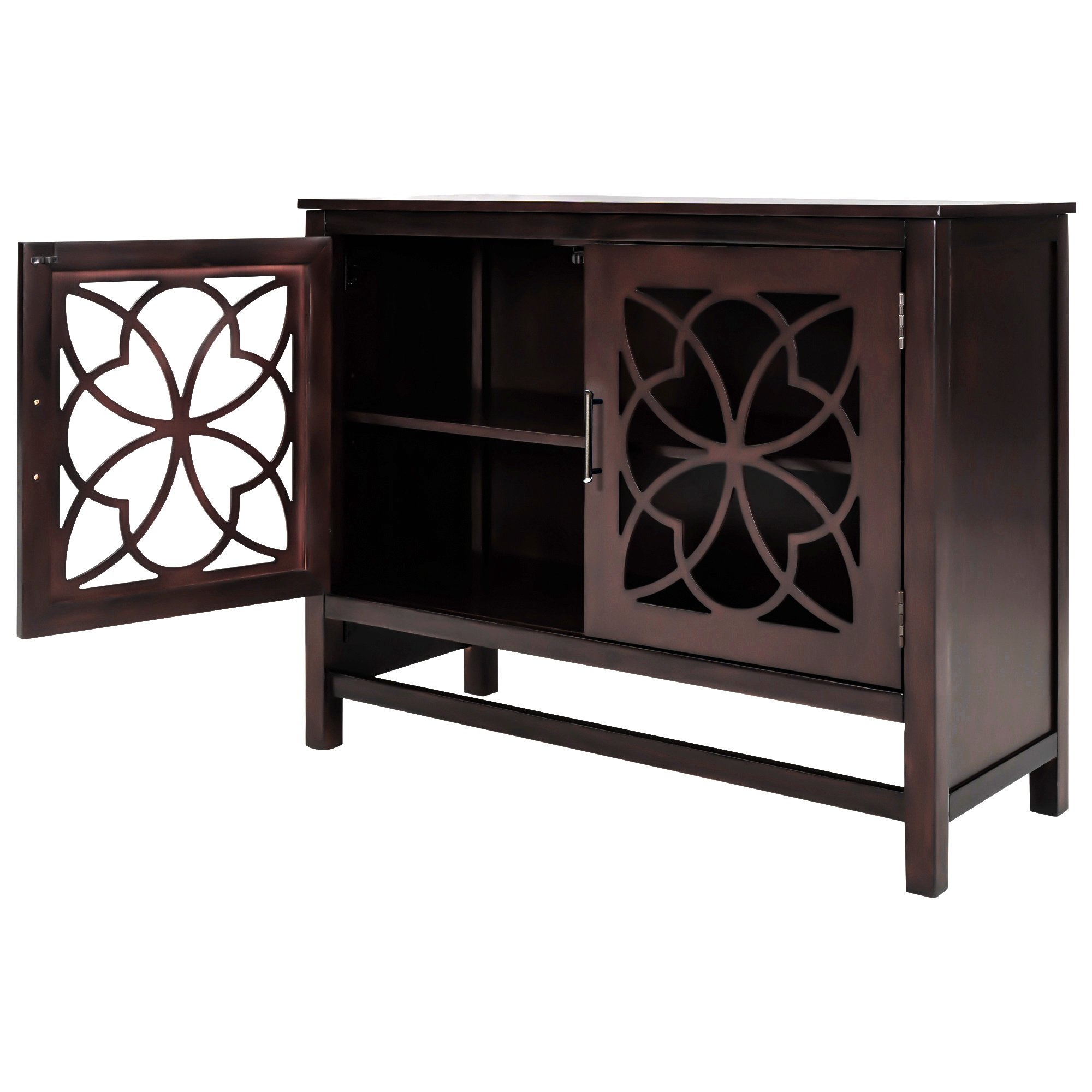 Highlight your home with this decorative accent cabinet, the fretwork doors add for an elegant design that is attractive and eye-catching. Made of solid pine wood for top and high-grade MDF for framework and legs, the storage cabinet is built for long-lasting construction. With brown painted finish,the accent cabinet features a simple yet charming look. The shelf is adjustable to store your favorite decor and accessories. Certified by dry wood standards, the quality of this cabinet is ensured for safety and performance. This combination of practical and ornamental design create a beautiful accent console cabinet that will complement any living room, dining room or hallway.