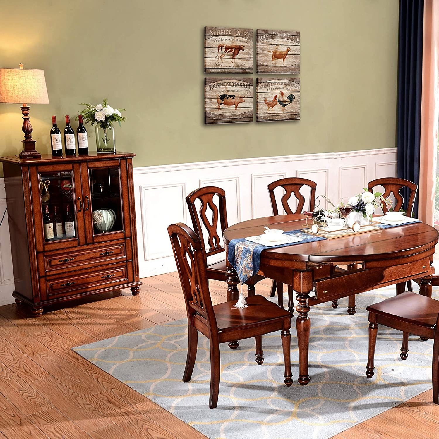 4.Application: Rooster cow and pig sheep kitchen pictures painting are suitable for many occasions. A perfect wall decorations paintings for dining room,kitchen,living room,bedroom,Apartment,Hotel,bathroom,bar,farm etc..