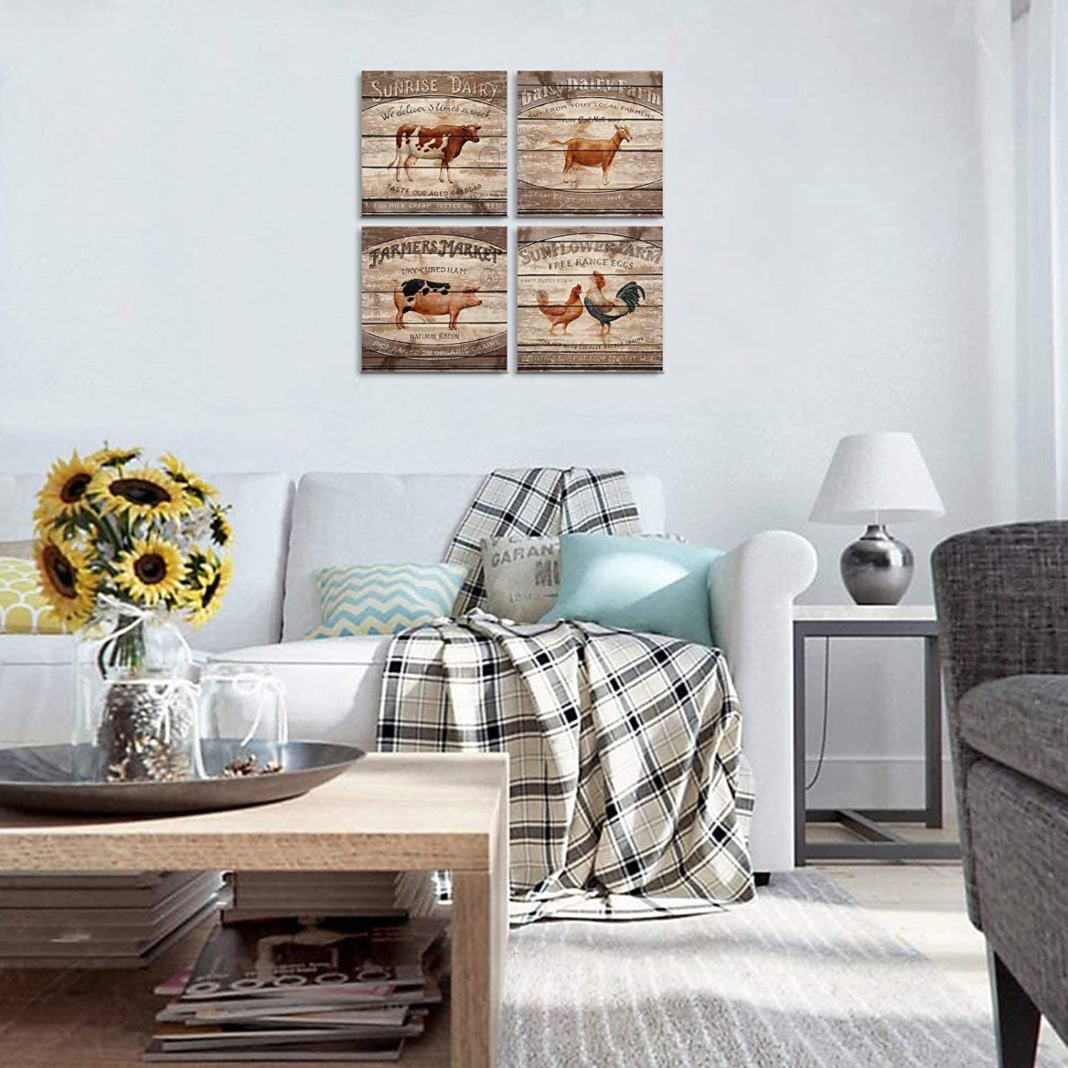 2.Vintage Farm Wall Decor Size: 12x12inch each panel,total 4 Panels.Packing in carton box.farm animal pictures.farm animal paintings canvas wall art.